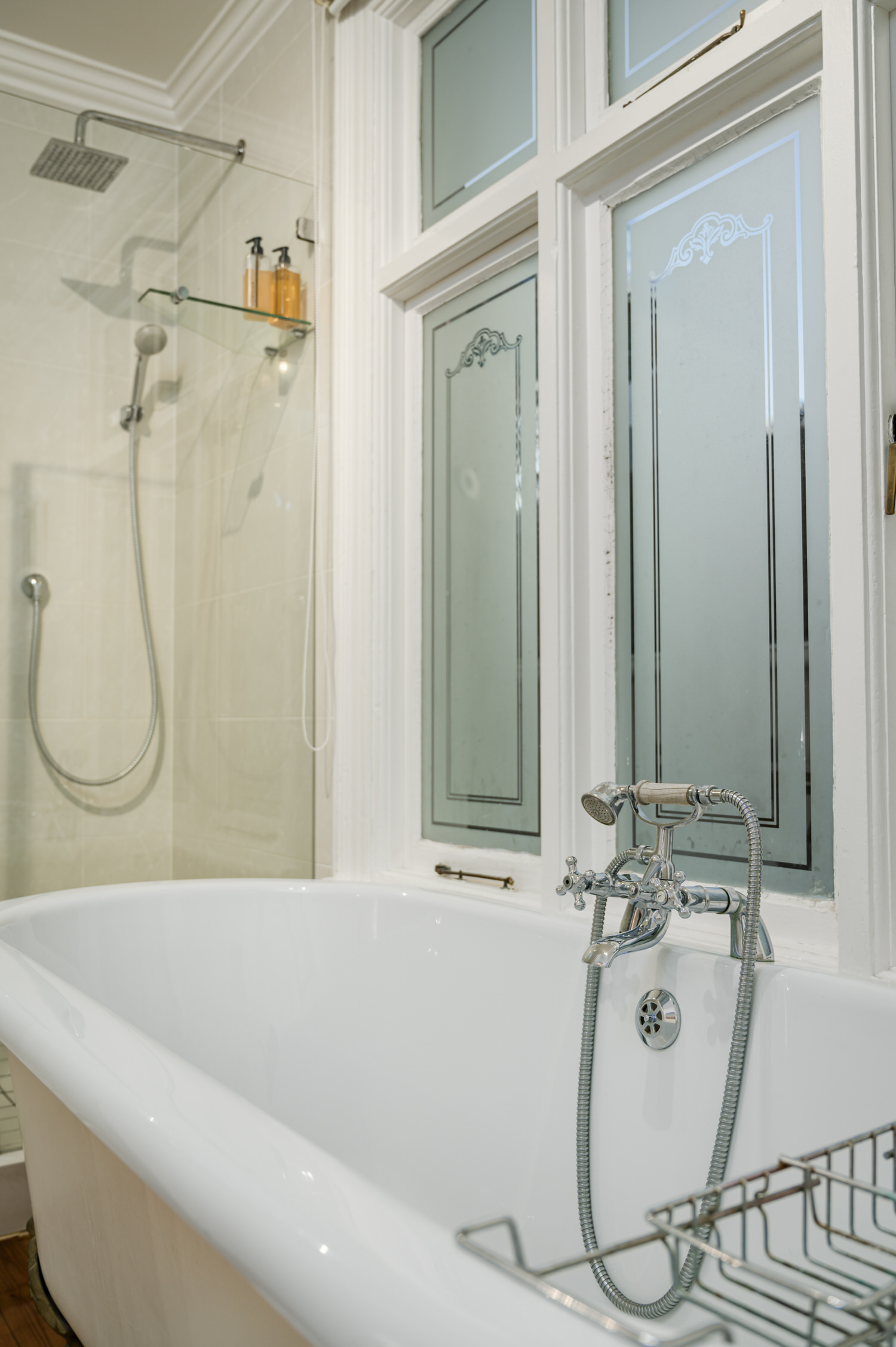 • Separate shower and free standing roll top bath