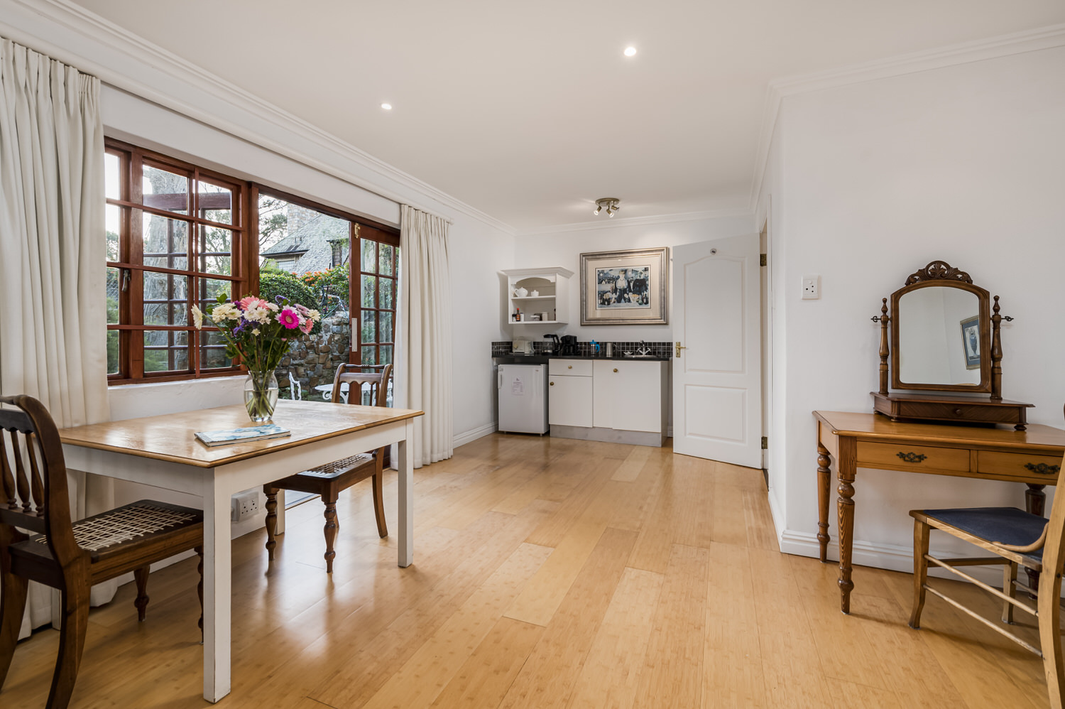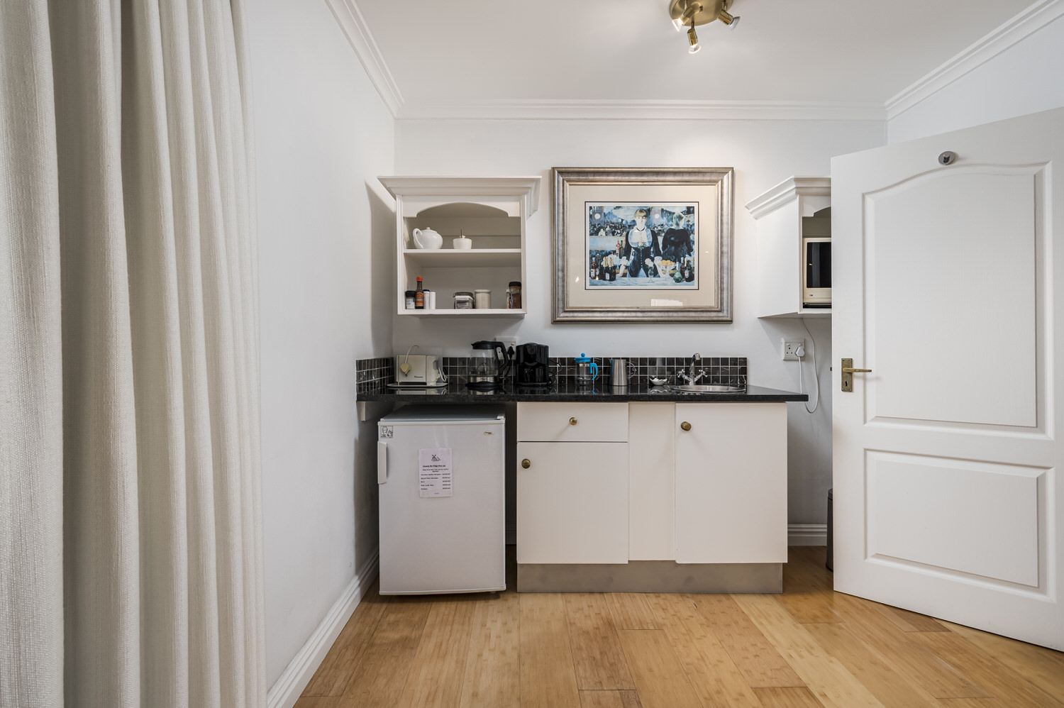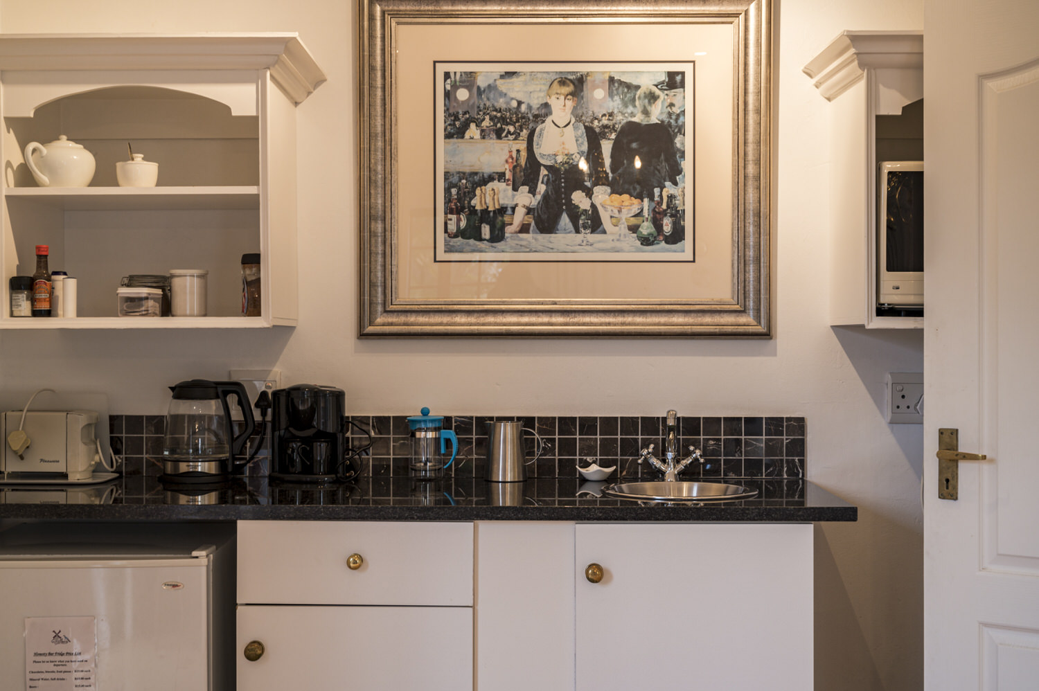 • Kitchenette, which includes – cutlery, crockery, glassware, complimentary tea, coffee and rusks, microwave, kettle, toaster and honesty fridge