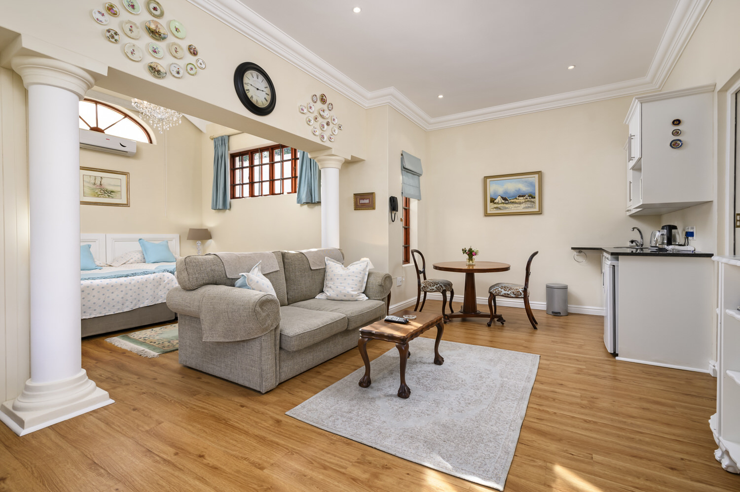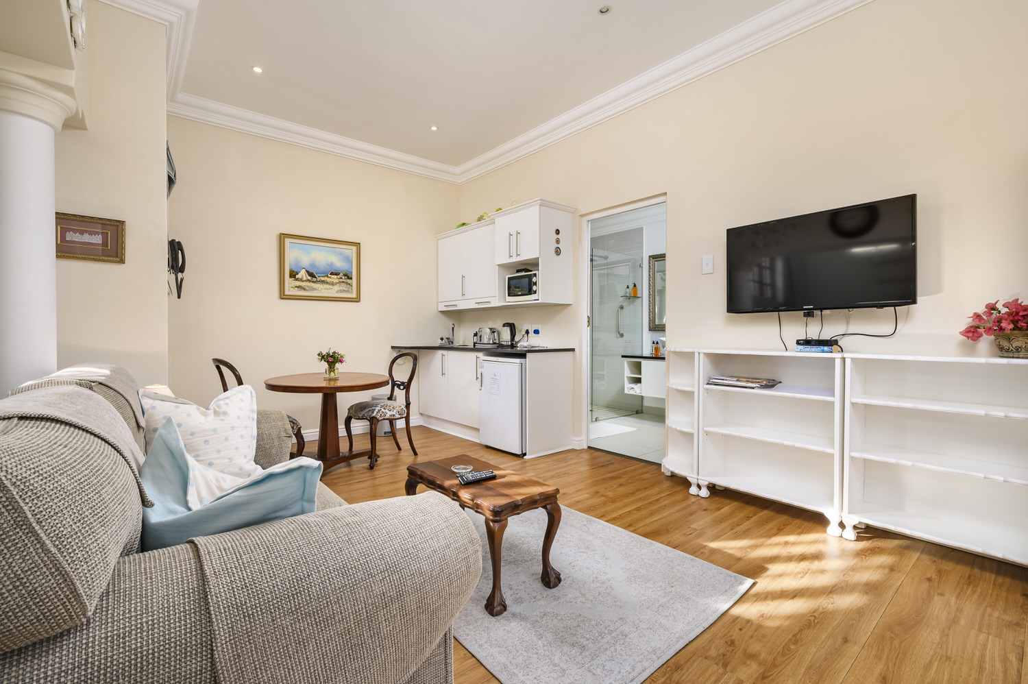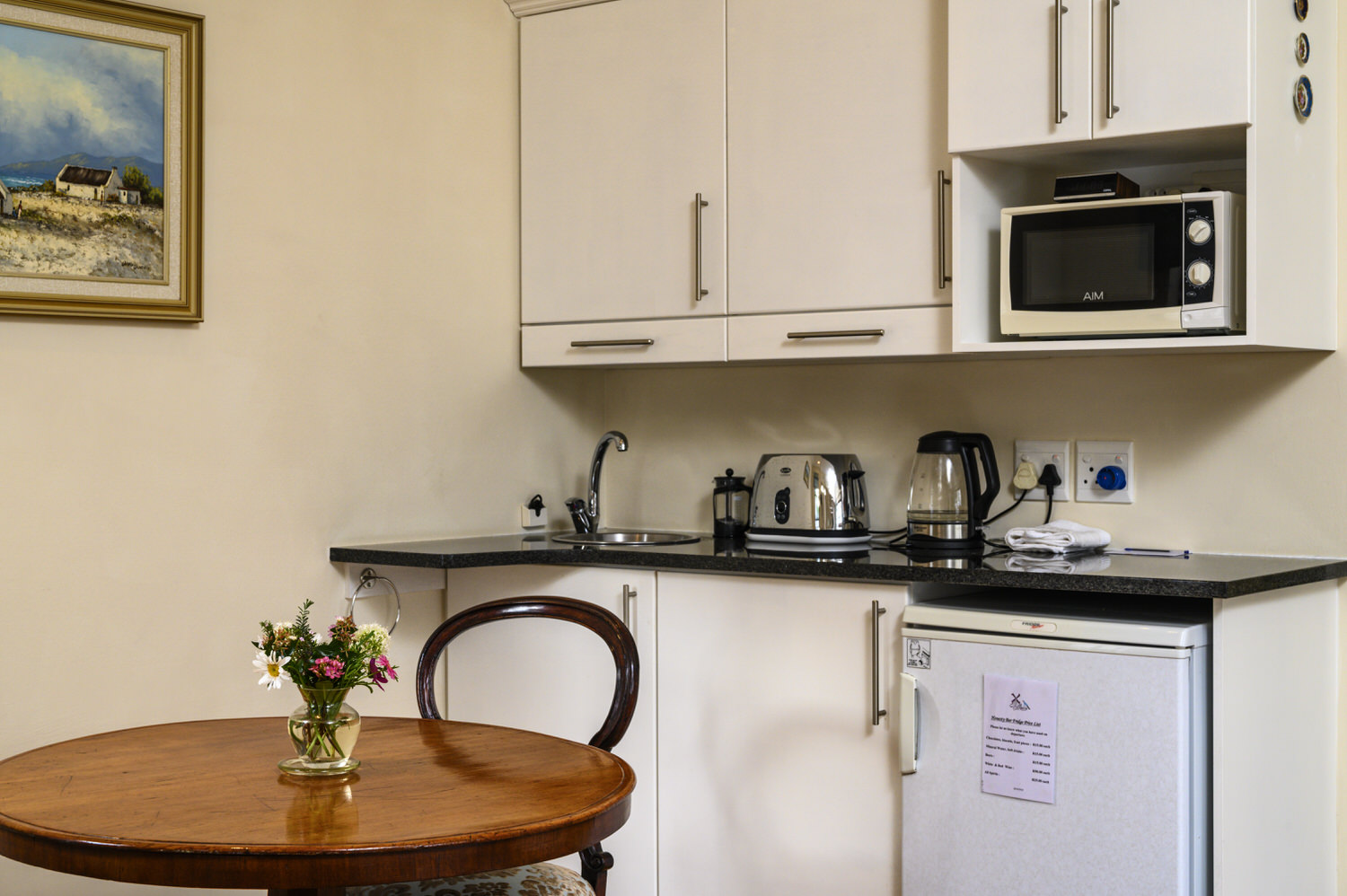 • Kitchenette, which includes – cutlery, crockery, glassware, complimentary tea, coffee and rusks, microwave, kettle, toaster and honesty fridge